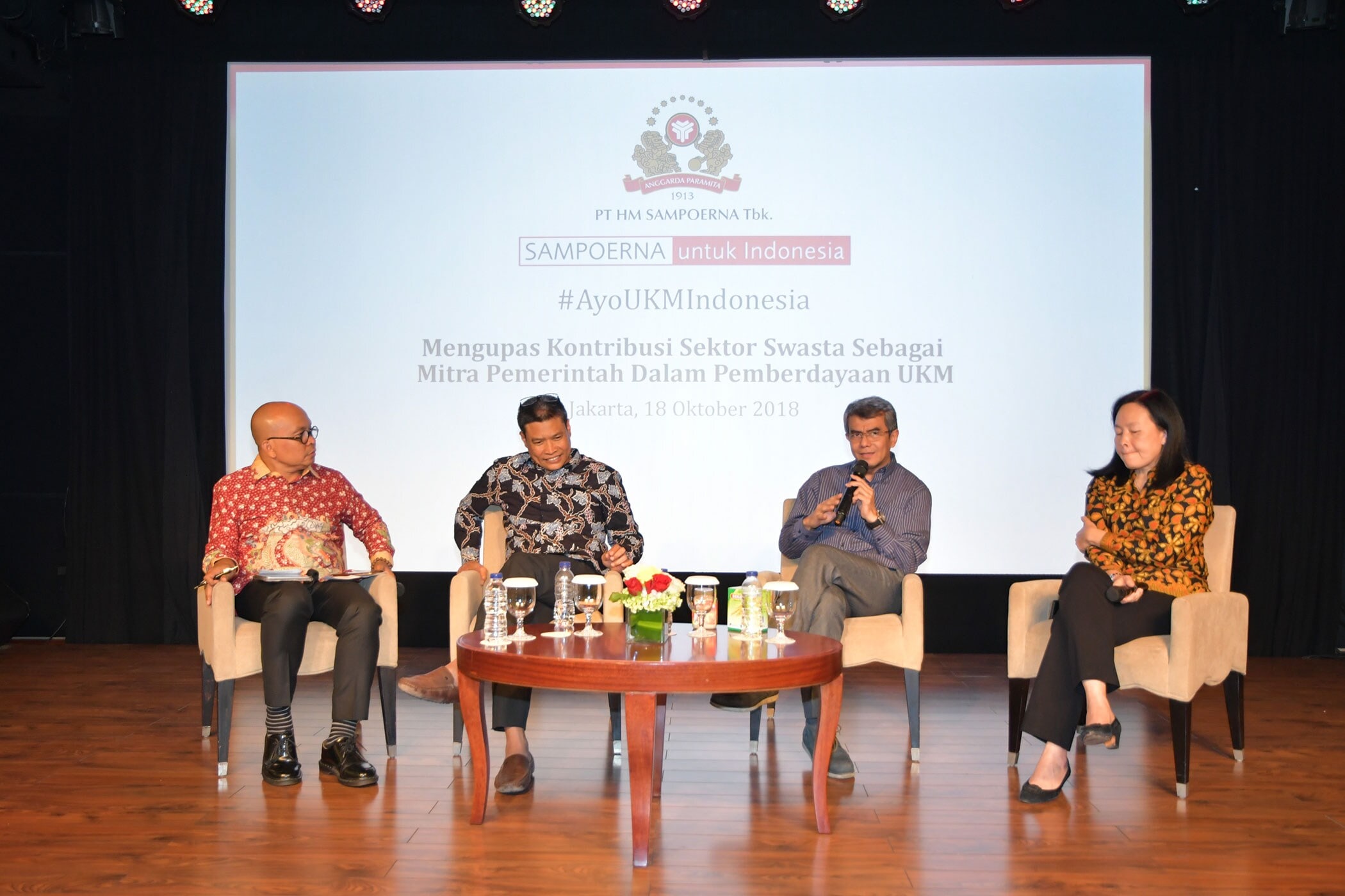 Jakarta, 18 October 2018 – PT HM Sampoerna Tbk. (Sampoerna) holds great commitment to support the effort of enhancing community economy through the empowerment of Small and Medium-sized Enterprises (SMEs) in Indonesia. On Thursday (10/18/2018), Sampoerna organized an interactive discussion involving economists, business figures, and SMEs businessmen and community in Jakarta. This discussions aims to talk further about the chance of synergy and potentials of SMEs empowerment so as to make them competition-worthy, autonomous with high quality and ability to boost both national and regional economy.