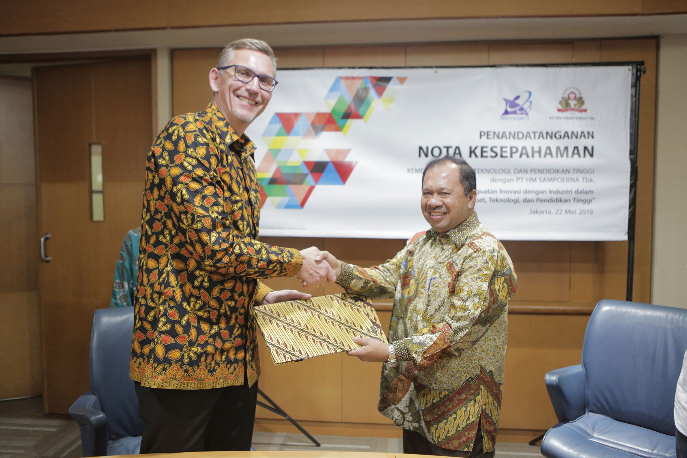 Jakarta, May, 22, 2019 – PT HM Sampoerna Tbk. (Sampoerna), a leading tobacco company in Indonesia, signed a Memorandum of Understanding (MOU) with the Ministry of Research, Technology, and Higher Education (MORTHE) on “Cooperation in Strengthening Innovation with the Industry in the Field of Research, Technology, and Higher Education.” This MOU was signed by the President Director of Sampoerna, Mindaugas Trumpaitis with the Minister of Research, Technology, and Higher Education, Mohamad Nasir, who was represented by Director General of Strengthening Innovation of the Ministry of Research, Technology, and Higher Education, Jumain Appe and accompanied by the Secretary General of the Ministry of Research, Technology, and Higher Education, Ainun Na'im.