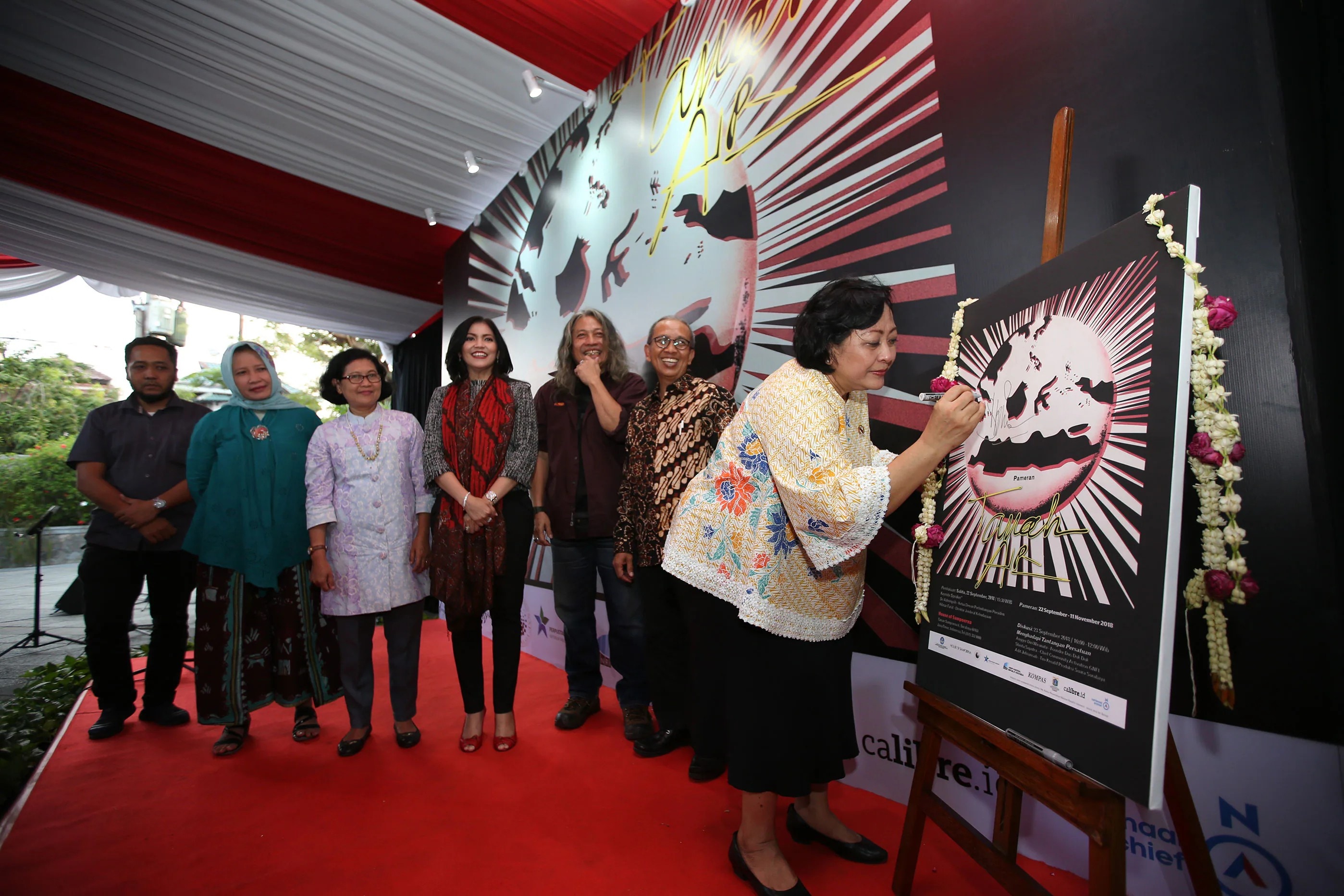 The exhibition held on 22 September – 11 November 2018 at The Residence, House of Sampoerna is a collaboration among House of Sampoerna, Directorate of History – Ministry of Education and Culture, National Museum of Indonesia, National Library of the Republic of Indonesia, National Archive of the Republic of Indonesia, Kompas Newspaper, Textile Museum of DKI Jakarta, Nationaal Archief Netherlands, Museum of Panji Tumpang, Malang, Museum of Wayang Potehi Gudo in Jombang, and private collector Ebby Dwijaya. The Directorate General of Culture for Ministry of Education and Culture of the Republic of Indonesia serves as the advisor, while the curators are Oscar Motuloh and Gunawan Widjaja from Calibre.id, as well as Ina Silas from House of Sampoerna.
