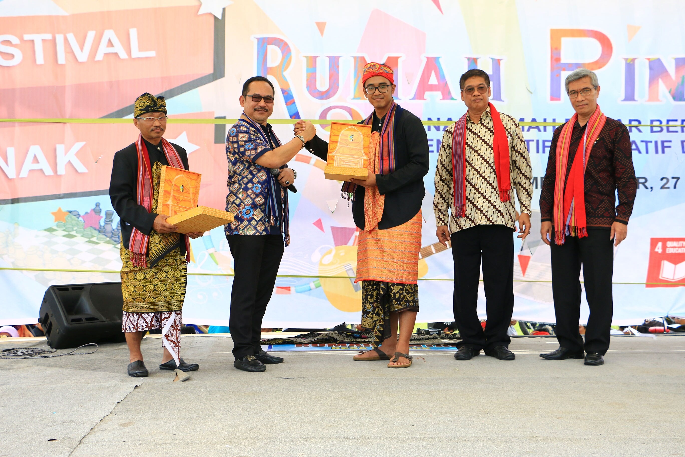 The first day of Child Competition included competition on subjects and games, ‘Rumpin Award’ as an appreciation for the parties who participated in the program’s implementation, and the reading of ‘Declaration of Children’s Rights Fulfillment and STOP Child Worker’ by a student representative, foster farmers, farm workers, tutors, and administrators of Rumah Pintar as well as parents. The second day of Children Festival covered exhibition involving Rumah Pintar from various villages. Each representation showcases learning facilities such as computer, traditional music instruments, edu-games facilities, and the students’ handicrafts to introduce the supporting learning facilities and program achievements.